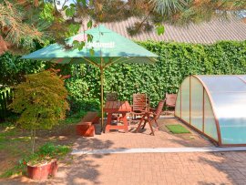 | Rekreační vybavení: | otevřená terasa (a×b m) altánek s posezením venkovní/zahradní posezení zahradní stůl zahradní židle venkovní gril venkovní bazén 8 x 3m |