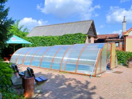 K dispozici 2lůžkový pokoj v penzionu, který je součástí rekr. areálu. Pro více páru, větší počet osob si můžete přiobjednat další pokoje, apartmán nebo chaty v areálu. Pokoj je vybaven dvoulůžkem, TV, posezením, malou lednicí, varnou konvicí, mikrovlnnou troubou, základním nádobím, dále koupelna s vanou, umyvadlem a WC. Vytápění centrální, ohřev vody boilerem. V areálu možnost připojení k Wi-Fi, nachází se zde posezení pod pergolou, venkovní posezení, gril, pískoviště, prolézačky, venkovní sprcha, nafukovací bazének, vyhřívaný zastřešený bazén s protiproudem (3 x 8 x 1,5 m). Penzion je k celoročnímu pronájmu, je zde přístup pro vozíčkáře po celém areálu i do restaurace, kde je nájezdový prostor.