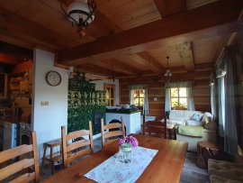 Roubenka s bezbariérovým přízemím na krásném místě na polosamotě u lesa. U roubenky dvě zastřešené terasy, venkovní posezení s ohništěm a grilem. Lyžování 500 m, okolí je super pro turistiku a cykloturistiku.