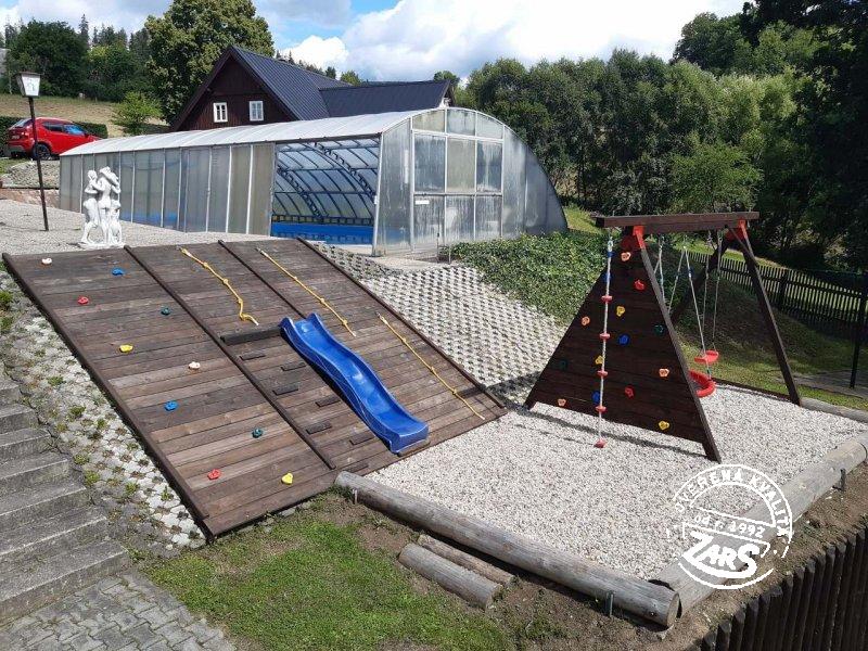 | Zábava pro děti: | pískoviště houpačka dětský bazének travnaté hřiště trampolína pro děti |