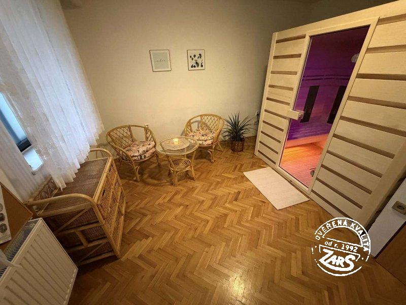 | Koupelna, WC, mokrá zóna: | samostatná koupelna, počet 4 teplá a studená voda samostatné splachovací WC, počet 4 umyvadlo infrasauna |