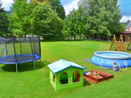 'description' => 'Rodinný apartmán na krásném místě, odkud můžete podnikat výlety jak na kole tak pěšky, pejsek můlže s Vámi. U chalupy pro Vás infrasauna, venkovní bazén, posezení, ohniště, venkovní krb, venkovní gril, prolézačky, pískoviště, houpačka.',