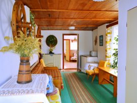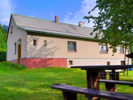 Chalupu je možné pronajmout jako celek nebo po částech. Chalupa má k dispozici dva apartmány, každý se svým vchodem. Apartmán č.1: obývací pokoj s TV a rádiem, dvě 2lůžkové ložnice, samostatná kuchyně vybavena el. chladničkou, el. vařičem, el. sporákem s troubou, sporákem na pevná paliva, rychlovarnou konvicí, nádobím aj., koupelna a WC. Apartmán č.2: 1. část: obývací pokoj se 4 lůžky, samostatná kuchyně vybavena el. vařičem, remoskou, rychlovarnou konvicí, lednicí, nádobím aj., 2. část: 4lůžková ložnice s jednou palandou, kuchyně vybavena mikrovlnkou, el. vařičem, remoskou, rychlovarnou konvicí, lednicí, nádobím aj. Velká společenská místnost s BTV, sprchový kout a WC. Vytápění pevnými palivy, ohřev vody boilerem. U chalupy zahradní posezení a ohniště, možnost úschovy kol. K dispozici bez povlečení!