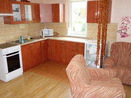 K dispozici v přízemí obývací pokoj s posezením (možnost využít jako dvě přistýlky) a BTV, samostatná kuchyně vybavena elektrickým sporákem, lednicí, mikrovlnou troubou, varnou konvicí, nádobím a jídelnou se vstupem na zastřešenou terasu s krbem a posezením. Dále 3lůžková ložnice a koupelna se sprchou a umyvadlem, WC. V patře obývací pokoj s posezením (lze využít jako přistýlky), samostatná kuchyně vybavena elektrickým sporákem, lednicí, mikrovlnou troubou, varnou konvicí, nádobím aj. 3lůžková ložnice, koupelna se sprchou, umyvadlem a WC. Vytápění ............, ohřev vody............... U chaty posezení pod zastřešenou terasou s krbem, dále pískoviště, ohniště, houpačky. U chaty velká udržovaná zahrada.