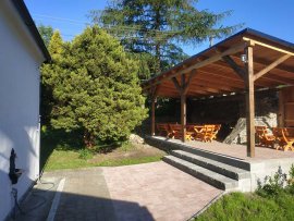 zastřešená terasa (a×b m) veranda (a×b m) pergola s posezením venkovní/zahradní posezení zahradní stůl zahradní židle venkovní krb venkovní gril ohniště možnost úschovy kol možnost úschovy lyží vinný sklípek