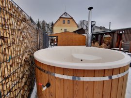 'text_description' => '<p>Pohodlný apartmán pro 2 osoby v perfektně udržovaném, moderním penzionu s velkou zahradou, bazénem, finskou saunou, koupacím sudem, restaurací aj.. Výborné zázemí pro letní turistiku, houbaření, rybaření a zimní sporty. Ubytování nejen pro náročnou klientelu. Strategické místo pro rozmanité vycházky a výlety. Aktivní odpočinek se dobře doplňuje s příjemnou relaxací a komfortem. Prožijte zajímavou dovolenou v malebném Šumavském kraji.</p>',