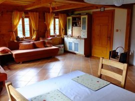 'text_equipment' => '<p>V přízemí velká světnice s kuchyní, která je vybavena nádobím, lednicí, sklokeramickou 2plotýnkou, horkovzdušnou troubou, rychlovarnou konvicí, kávovarem Nespresso aj., dále jídelní stůl, krbové kamna, posezení, TV, satelit, DVD přehrávač, samostatné WC s umyvadlem a koupelna se sprchovým koutem, rohovou vanou, tepelným sušákem na ručníky, autom. pračka a podlahové vytápění. V 1.patře 2lůžková ložnice (jedno dvoulůžko) a 4lůžková ložnice (2x dvoulůžko), samostatné WC. V podkroví jsou 4 zdravotní matrace. Možnost využití dětské postýlky. Vytápění krbové (průduchy do horního patra a kombinace s podlahovým vytápěním po celém přízemí), ohřev vody boilerem. U chalupy zastřešená prostorná terasa s dřevěným zahradním nábytkem a grilem s dřevěným uhlím.</p>',
