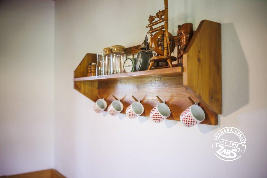 | Kuchyně: | základní nádobí pro všechny osoby kuchyňský kout teplá a studená voda el. chladnička mrazák mikrovlnná trouba el. varná deska el. trouba samostatná myčka nádobí varná konvice kávovar |