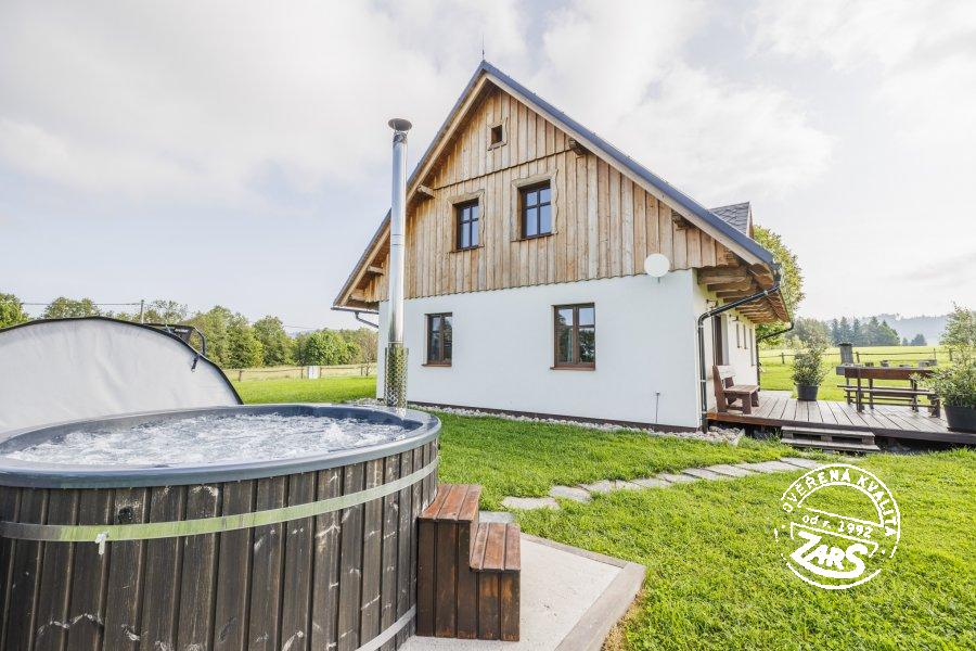 Chalupa Pod masivem Kralického Sněžníku - s vyhřívaným bazénem a saunou, koupacím sudem