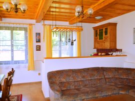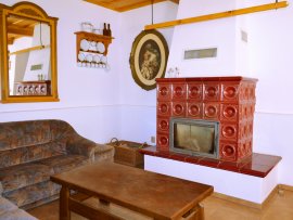 'text_equipment' => '<p>V přízemí obývací kuchyně s kachlovými kamny, posezením, BTV a kuch. koutem s posezením, el. chladničkou, mražákem, mikrovlnnou troubou, el. varnou deskou, myčkou na nádobí, varnou konvicí, nádobím aj., dále koupelna s vanou, umyvadlem a WC. V patře dvě 2lůžkové ložnice a 4lůžková ložnice. Vytápění kamny, ohřev vody boilerem. U chalupy nové kryté venkovní posezení s příjemným poležením a nově zapuštěný bazén 6x4 m, se slanou vodou, protiproudem, ohřívaný, osvětlený a zastřešený.</p>',