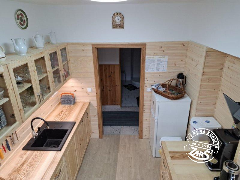 'text_equipment' => '<p>Chalupa je rozdělena na 3 části - podzemní patro, přízemí a podkroví, pronajímá se jako celek. V podzemí je infrasauna, sprcha, umyvadlo a odpočívarna. V přízemí společenská místnost s krbem, posezením, BTV a kuch. koutem vybaveným el. chladničkou s mrazákem, mikrovlnnou troubou, myčkou na nádobí, el. sporákem, varnou konvicí, nádobím aj. Dále 3lůžkový bezbariérový pokoj s vlastním soc. zařízením, dva 2lůžkové pokoje se společným soc. zařízením. V podkroví společenská místnost s posezením, BTV a kuch. koutem vybaveným el. chladničkou s mrazákem, mikrovlnnou troubou, el. dvouvařičem, varnou konvicí, nádobím aj., 2 x koupelna se sprchou a umyvadlem, dále 4lůžkový, 2 x 3lůžkový a jeden 5lůžkový (rozdělen na dvě místnosti 2 a 3 lůžka, jedna ložnice průchozí) pokoj. Vytápění chalupy elektrické centrální, ohřev vody boilerem. Pro děti pískoviště, houpačky, dětské židličky, trampolína. U chalupy venkovní ohniště s grilem, posezením, menší bazén pro děti, zahradní křesla, lavice, lavičky a stoly. N<span style="background-color: transparent;">a zahradě zateplený, vytápěný nerezový koupací sud pro 8-10 hostí s celoročním využitím. </span><span style="background-color: transparent;">Koupací sud má vnitřní průměr 200 cm, osvětlení, buble systém, vířivku s osmi tryskami, termo kryt a vlastní topení. Od ledna 2023 je na chalupě zhotovena fotovoltaika, spotřeba el. energie a doplatek za ní v létě bude téměř nulový, v zimním období poloviční. <br /></span></p>',