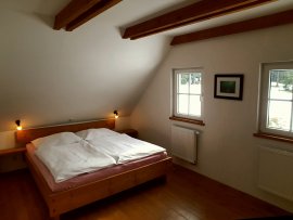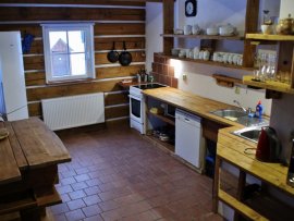 'text_equipment' => '<p>Roubenka nabízí v přízemí vstupní chodbu, plně vybavenou kuchyň s elektrickým sporákem, pečicí troubou, velkou lednicí s mrazákem, myčkou nádobí, kávovarem Nespresso a veškerým potřebným nádobím. Kuchyň je propojena s prostornou společenskou místností s jídelním koutem, krbem a pohodlným posezením. V přízemí se dále nachází relaxační místnost s hydromasážní vanou s chromoterapií a finskou saunou. V chatě je k dispozici sedm dvoulůžkových pokojů, z toho pět s vlastním sociálním zařízením. Celkem je v objektu šest sprchových koutů, umyvadel a toalet. Vytápění je zajištěno provozovatelem, hosté se o něj nemusí starat. U chaty se nachází také venkovní finská sauna s kamny na dřevo, ochlazovací jezírko, venkovní posezení s ohništěm a dostatek prostoru pro relaxaci i sportovní aktivity. Ubytování je vhodné pro max. 14 osob.</p>',
