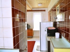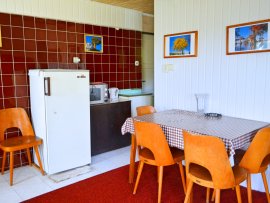 | Kuchyně: | základní nádobí pro všechny osoby kuchyňský kout teplá a studená voda el. chladnička mikrovlnná trouba el. vařič dvouplotýnkový |