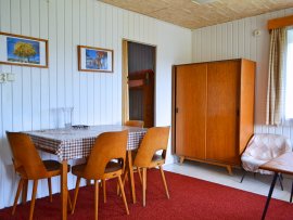 V přízemí terasa s posezením, obývací pokoj s přistýlkou, BTV, kuchyňský kout s chladničkou, mrazákem, el. dvouvařičem, nádobím, aj., 4lůžková ložnice s palandami, koupelna, WC. Venkovní samostatný vchod do podkroví: obývací pokoj s přistýlkou, BTV, balkón, kuchyňský kout vybaven chladničkou s mrazákem, el. dvouvařičem, nádobím aj., 4lůžková ložnice s palandami, koupelna a WC. Vytápění el., ohřev vody el. průtokový. U chaty posezení, houpací lavice, kuželky, gril a ohniště.