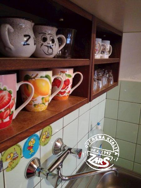 | Kuchyně: | základní nádobí pro všechny osoby samostatná teplá a studená voda samostatná kuchyňská linka el. chladnička mrazák mikrovlnná trouba el. vařič dvouplotýnkový varná konvice |