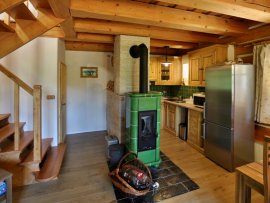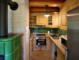'text_equipment' => '<p>Ubytování v části krásné roubenky s vlastním vchodem. Roubenka je rozdělena na dvě části, každá část má vlastní vchod a vlastní venkovní posezení. V této části v přízemí společenská místnost s posezením, BTV, krbovými kamny a jídelním posezením, kuch. část vybavena mikrovlnnou troubou, el. varnou deskou, el. troubou, rychlovarnou konvicí, kávovarem, lednicí s mrazákem, nádobím aj., samostatné WC. V patře 2lůžková a 4lůžková ložnice, koupelna se sprchovým koutem, umyvadlem a WC. Vytápění elektrické a krbové, ohřev vody boilerem. U roubenky posezení, gril a ohniště. Pro obě části roubenky společné dětské houpačky, skluzavka, pískoviště, malý basketball,venkovní stolní tenis a malý fotbálek. Cyklisté mohou uschovat svá kola v přístavku pod uzamčením.</p>',