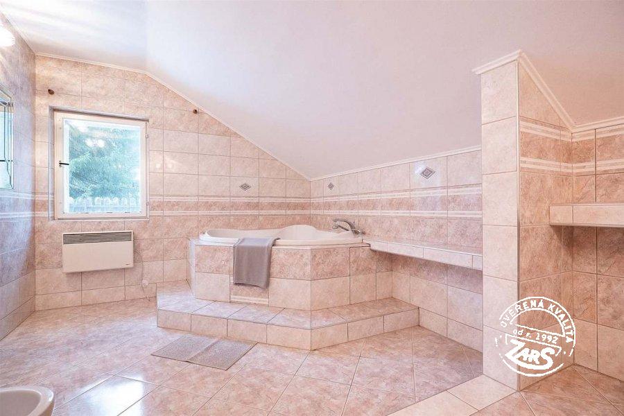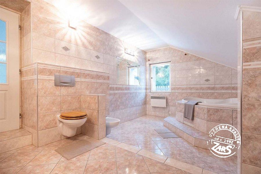 | Koupelna, WC, mokrá zóna: | samostatná koupelna, počet 5 teplá a studená voda splachovací WC v koupelně, počet 5 umyvadlo, počet 5 koupelnová vana, počet 2 infrasauna |