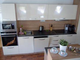 základní nádobí pro všechny osoby samostatná kuchyňský kout teplá a studená voda samostatná kuchyňská linka el. chladnička mrazák mikrovlnná trouba el. trouba samostatná myčka nádobí varná konvice kávovar