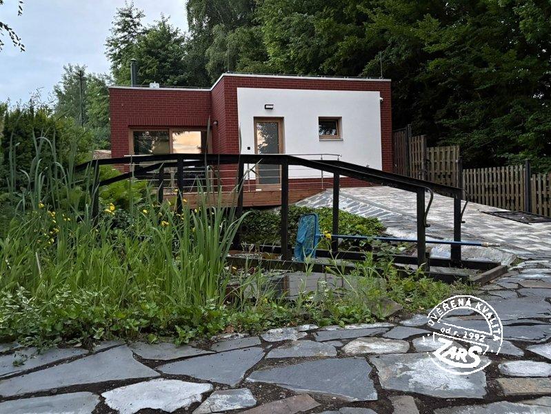 Rekreační domek Vřesina - grilování a posezení u rybníčku s vodopádem