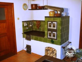 'text_equipment' => '<p>K dispozici obývací kuchyně s kachlovými kamny, posezením, BTV, DVD, dále kuch. kout vybaven jídelním posezením, 4plotýnkovou sklokeramickou deskou, myčkou na nádobí, mikrovlnnou troubou, lednicí s mrazákem, varnou konvicí, nádobím aj, dále 4lůžková a 2 lůžková ložnice, koupelna s vanou, umyvadlem a WC. Vytápění v kachlových kamnech, ohřev vody boilerem. U chalupy ohniště s posezením, dále posezení se zavěšenou houpací lavicí, pergola s posezením a s hračkami pro děti.</p>',